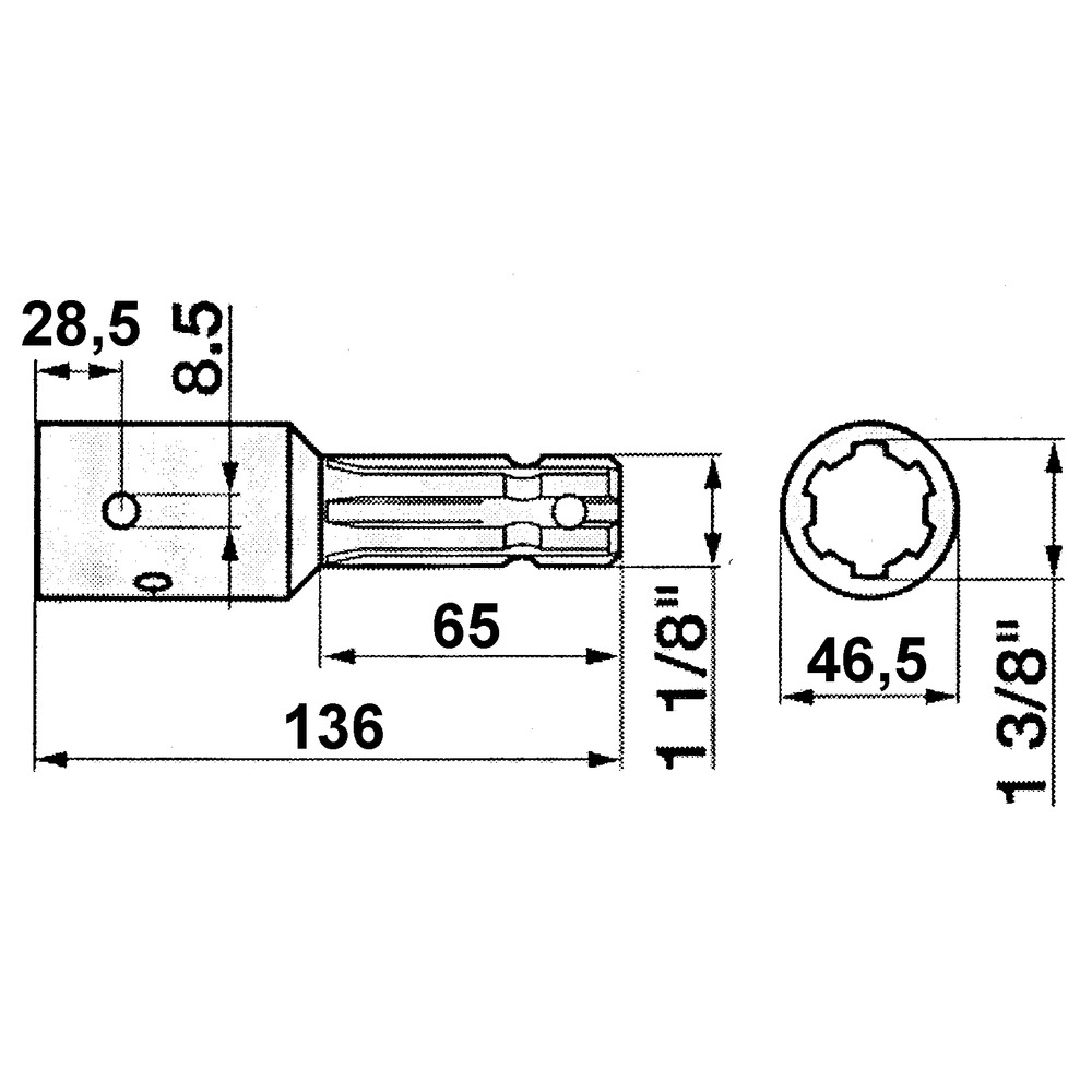 Longueur : 140 mm, profil extérieur - intérieur : 1 1/8x6 - 1 3/8x6