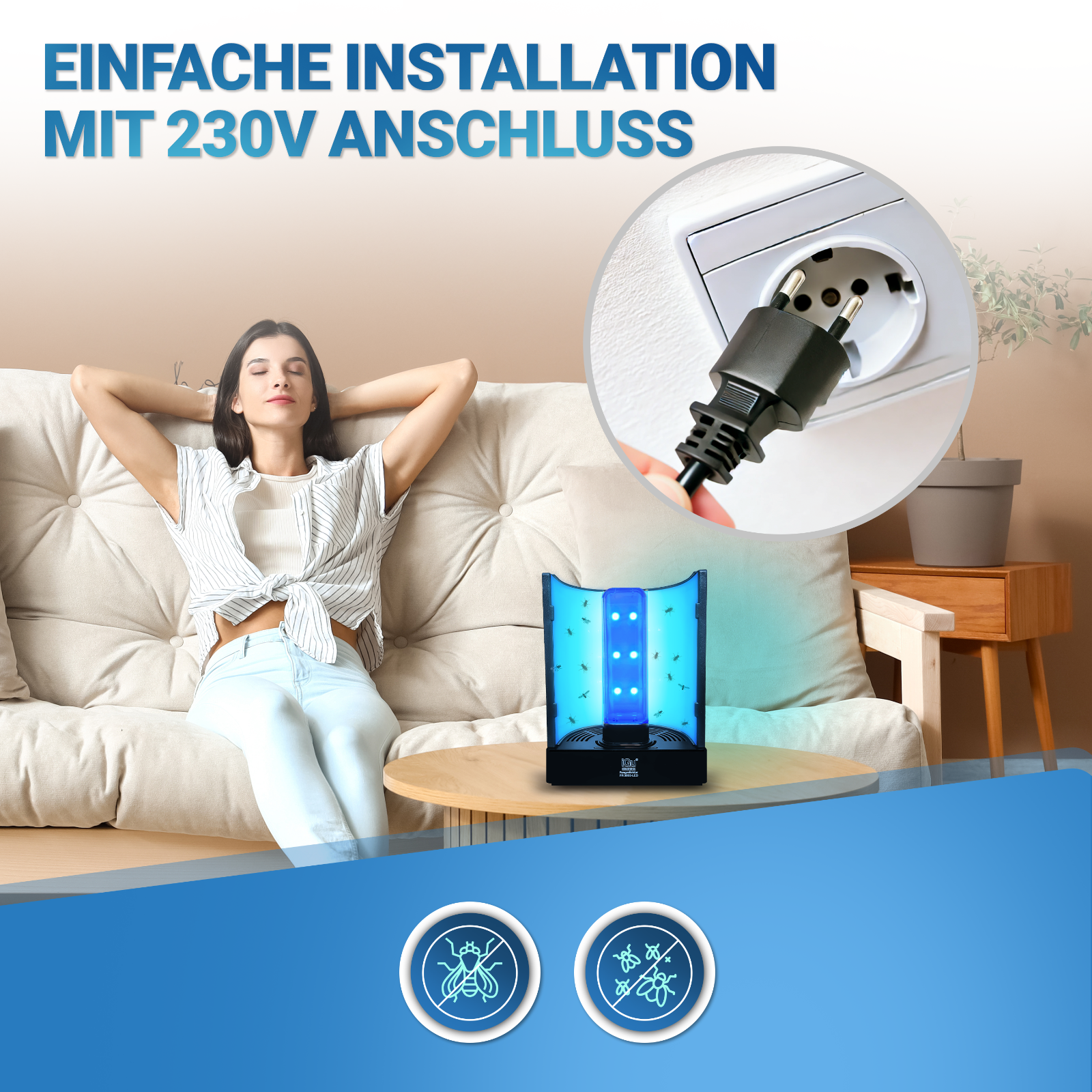 Grâce à la technologie LED UV-A la plus moderne, l'appareil attire les mouches, moustiques et autres insectes plus efficacement que les modèles traditionnels.