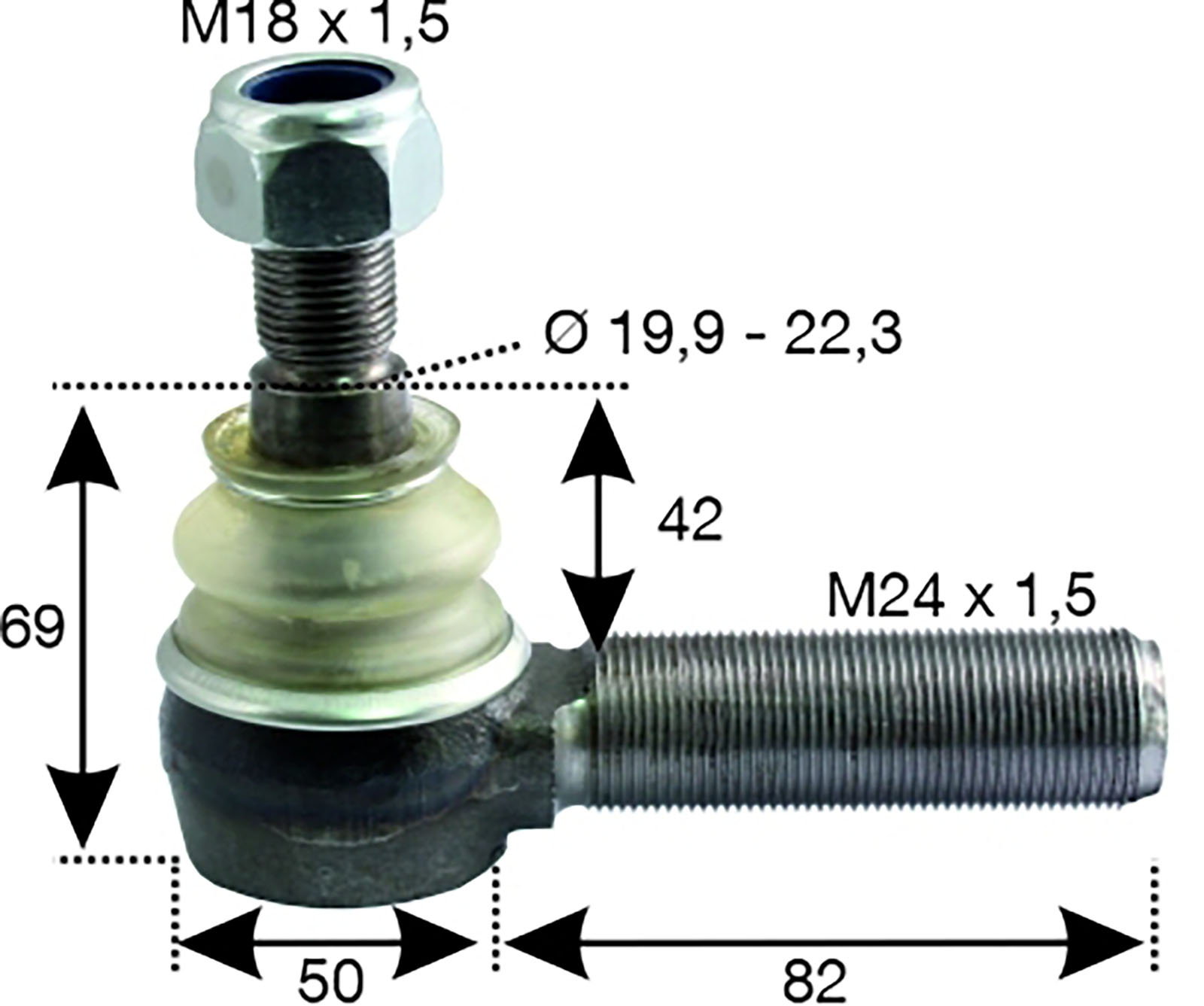 Rotule M24x1,5R cône 19,9-22,3