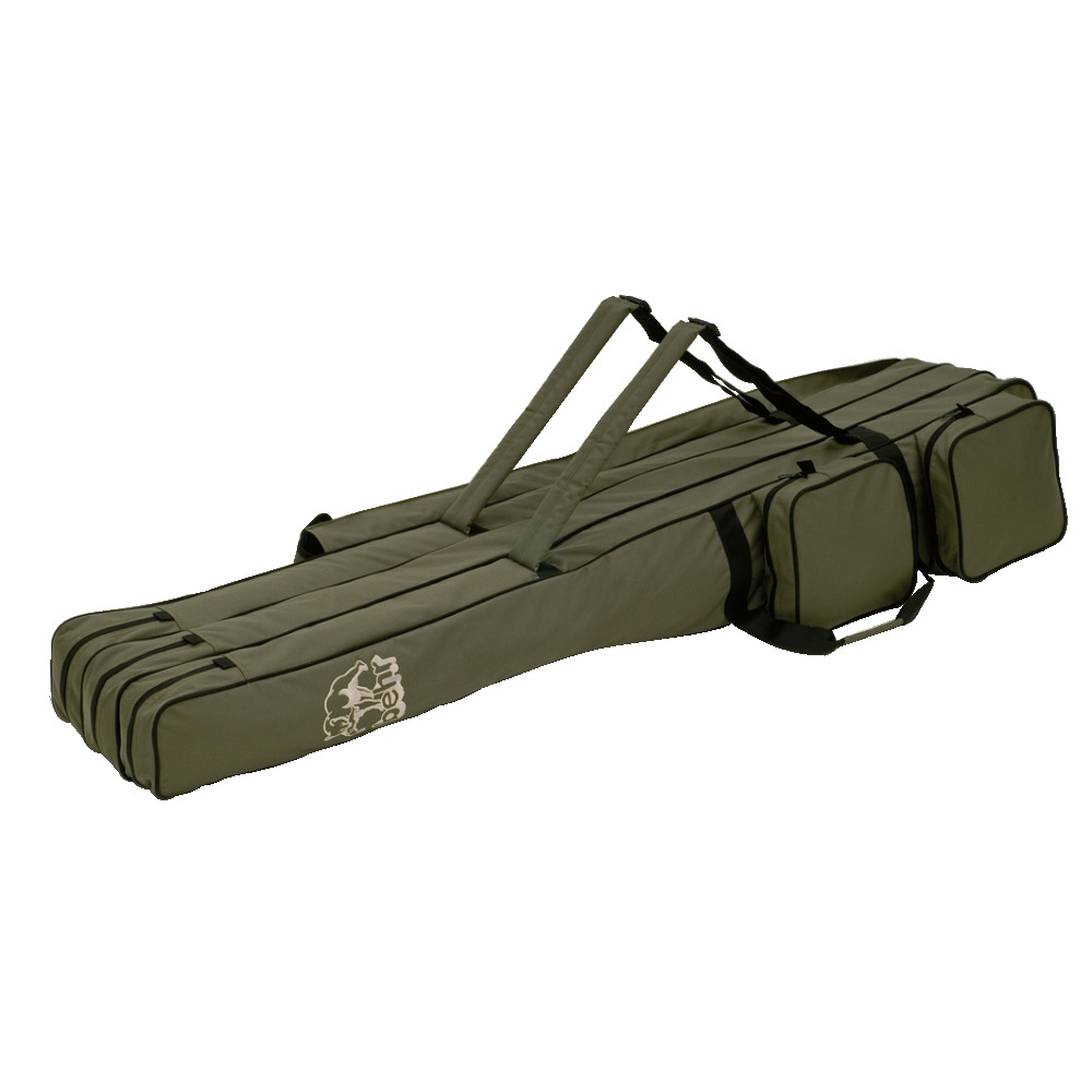 grandes poches extérieures apparentes à droite, 2 petites poches à gauche. Sangle arrière robuste et bien rembourrée, ainsi que des dragonnes supplémentaires, une longue poche latérale extérieure pour piquets, épuisette, etc.