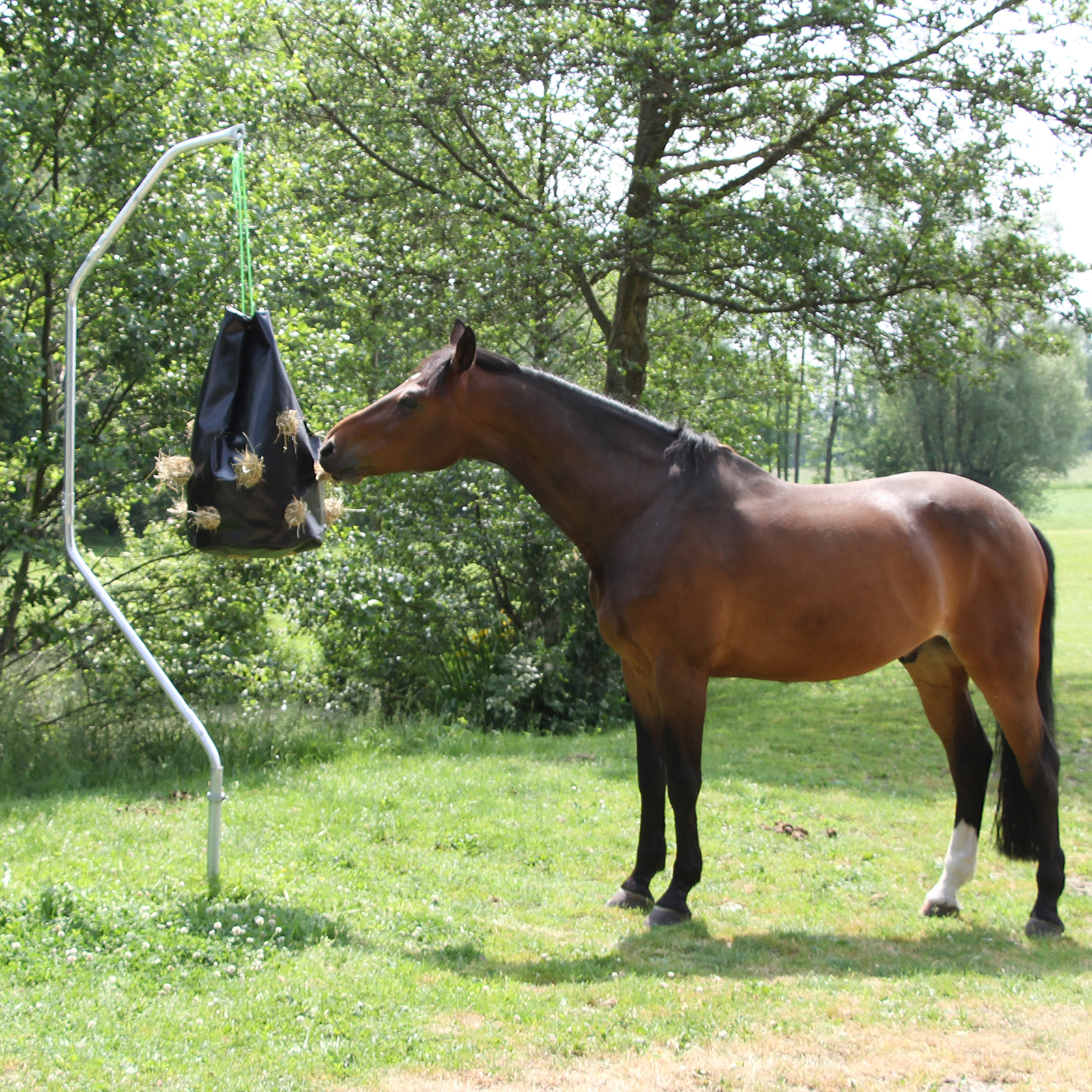 pour fixer des filets à foin ou des pièges à taons