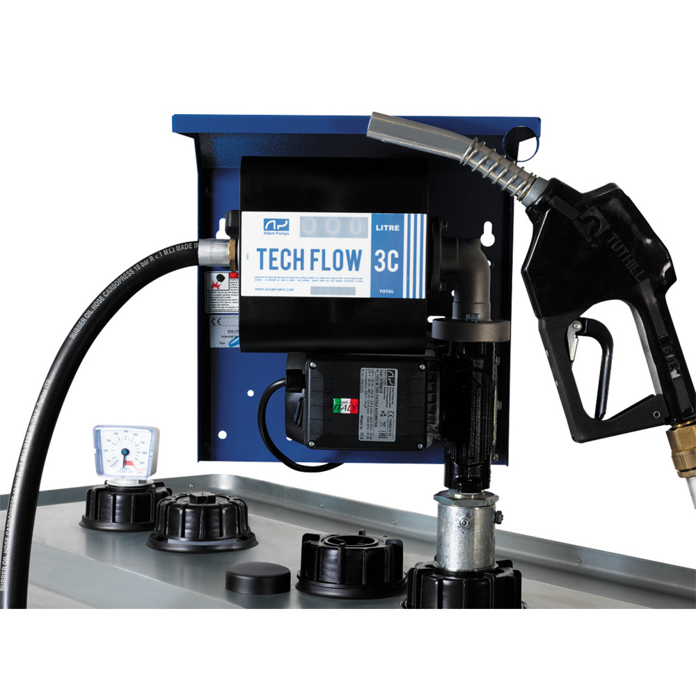 La station-service professionnelle dispose d'une puissante pompe 230 V électrique auto-aspirante avec un débit de max. 50 L/min. Inclus un tuyau de sortie de 4m.