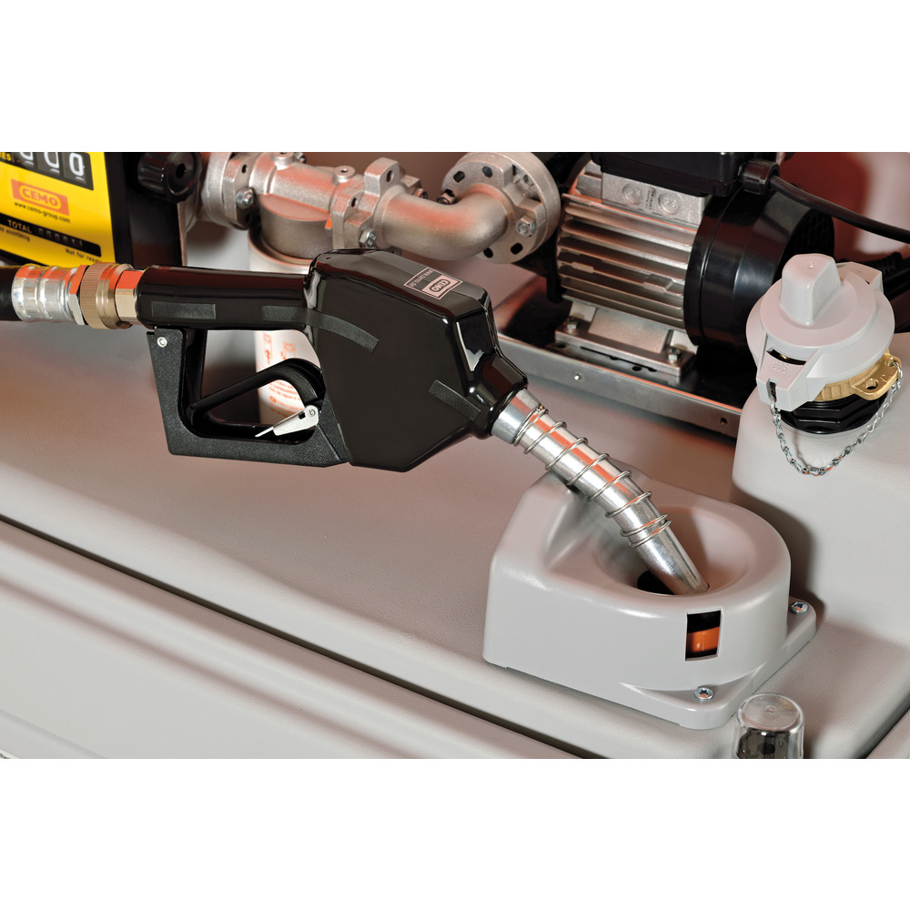 La solution complète parfaite pour les entreprises ayant des besoins en carburant plus importants. Grâce à la conception innovante en tant que solution complète, il n'y a presque aucun effort d'installation ou de montage. Le réservoir a une capacité de 5 000 litres et est équipé d'un bac collecteur intégré. Un indicateur de fuite optique, un indicateur de niveau de remplissage et un raccord de remplissage avec raccord TW et indicateur de limite sont standard. La pompe électrique auto-amorçante 230V d'un débit de 70 L/min dispose d'un filtre incluant un séparateur d'eau pour une sécurité optimale dans vos véhicules. L'enrouleur de tuyau standard avec un tuyau de 8 m et le pistolet à carburant automatique assurent un ravitaillement facile de tous les types de véhicules. Le réservoir est doté d'un couvercle à charnière avec vérins à gaz pour une utilisation facile et une protection optimale des composants dans toutes les conditions météorologiques. Le réservoir (Made in Germany) est livré avec un certificat de test (Z-40.21-565) et doit être signalé à l'autorité compétente. Dimensions extérieures : L 240 x P 230 x H 185 cm