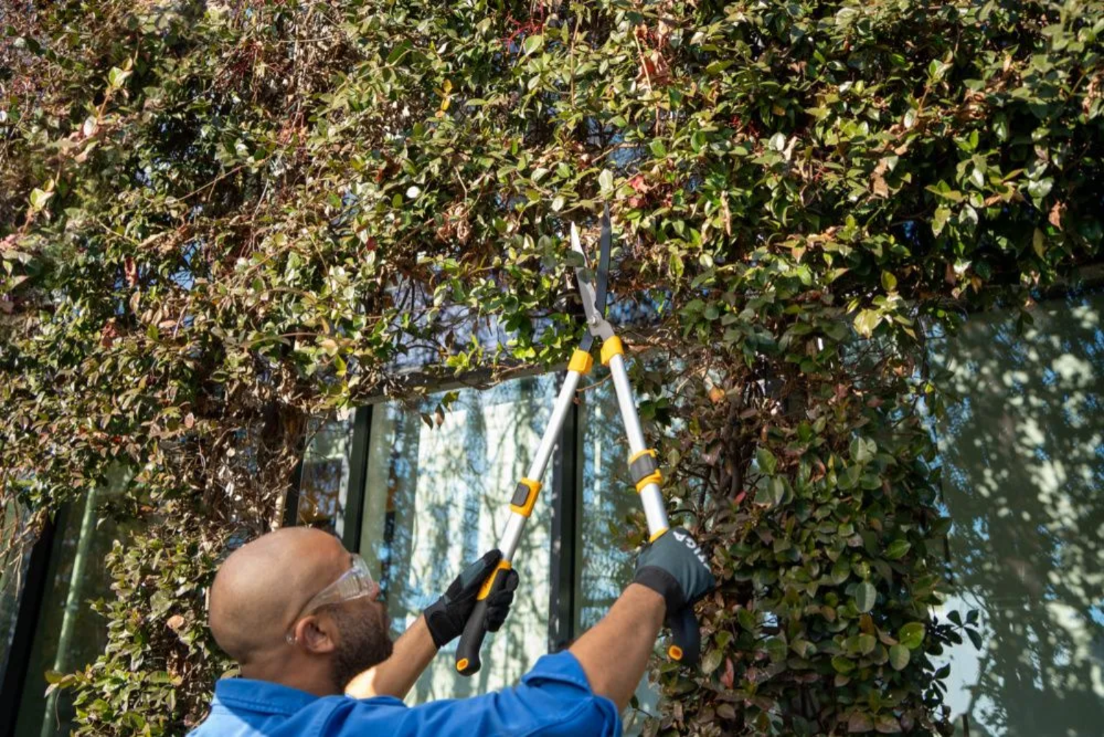 Équipé d'une lame antiadhésive et résistante, il garantit une coupe nette même sur les haies hautes.