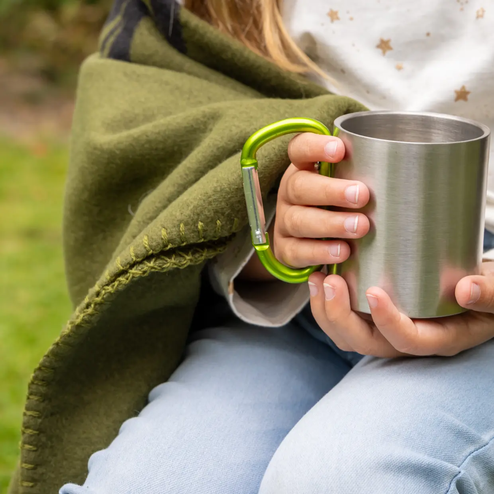 Grâce au mousqueton, vous pouvez emporter votre tasse partout avec vous. La tasse isotherme est une alternative réutilisable et écologique aux tasses en plastique.
