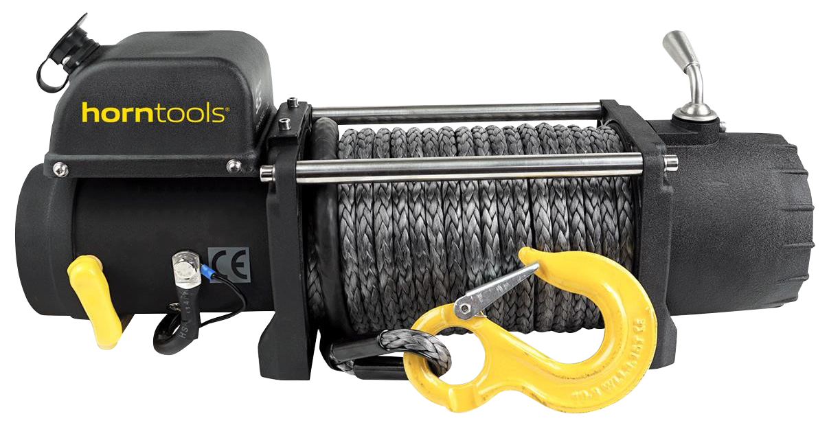 Treuil puissant de 12 V avec une force de traction maximale de 4 300 kg, longueur de câble de 26 m, équipé d'une télécommande par câble et d'un crochet de sécurité.
